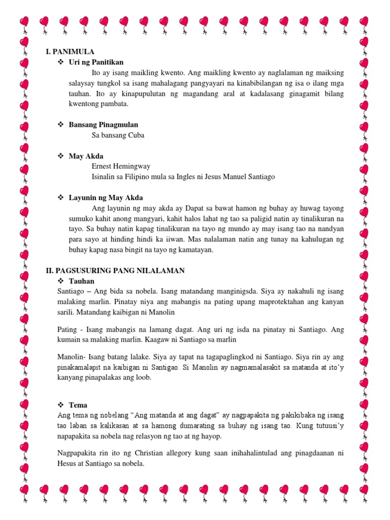 Answers B suluranin dahil hulahula lang ako haha o3o Ang matanda at ang dagat a. 2 See answers Another question on Filipino. Ang matanda at ang dagat ni Ernest Hemingway Si Santiago ay pumalaot ng 84 na araw ng walang nahahalinang isda sa laot ito ay itinuturing na Salao ang pinakamasamang kaanyoan ng kamalasan.