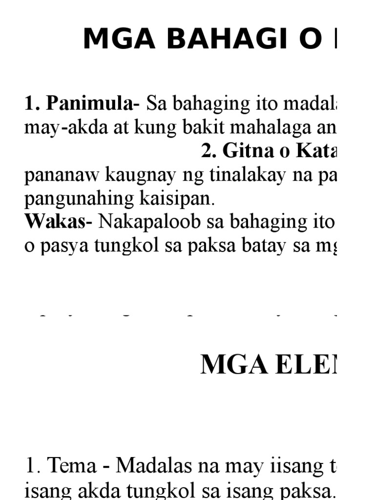 Ang simula o panimula gitna o katawan at wakas. 1 See answer edilbertoromeoando edilbertoromeoando Explanation. Edukasyon sa panahon Ng pandemyatema.