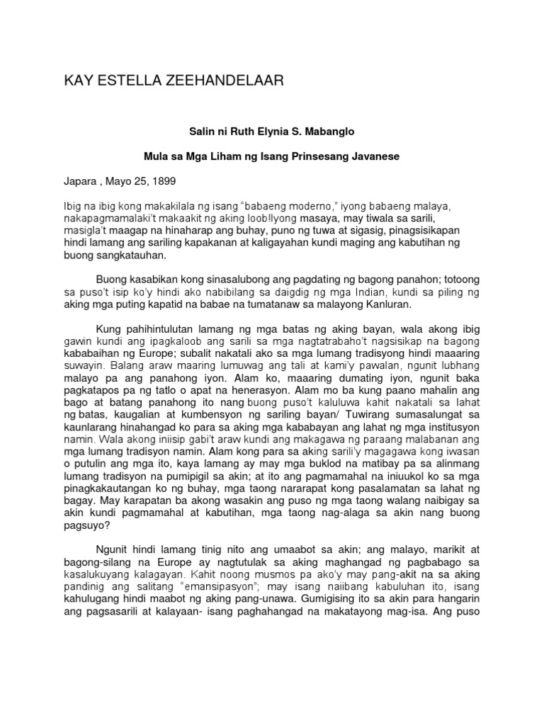 Kay estella zeehandelaar wakas. She just want a free world where no law can lock her up. To play this quiz please finish. Mabanglo Mula sa Mga Liham ng Isang Prinsesang Javanese Japara Mayo 25 1899 Ibig na ibig kong makakilala ng isang babaeng moderno iyong babaeng malaya nakapagmamalakit makaakit ng aking loob.