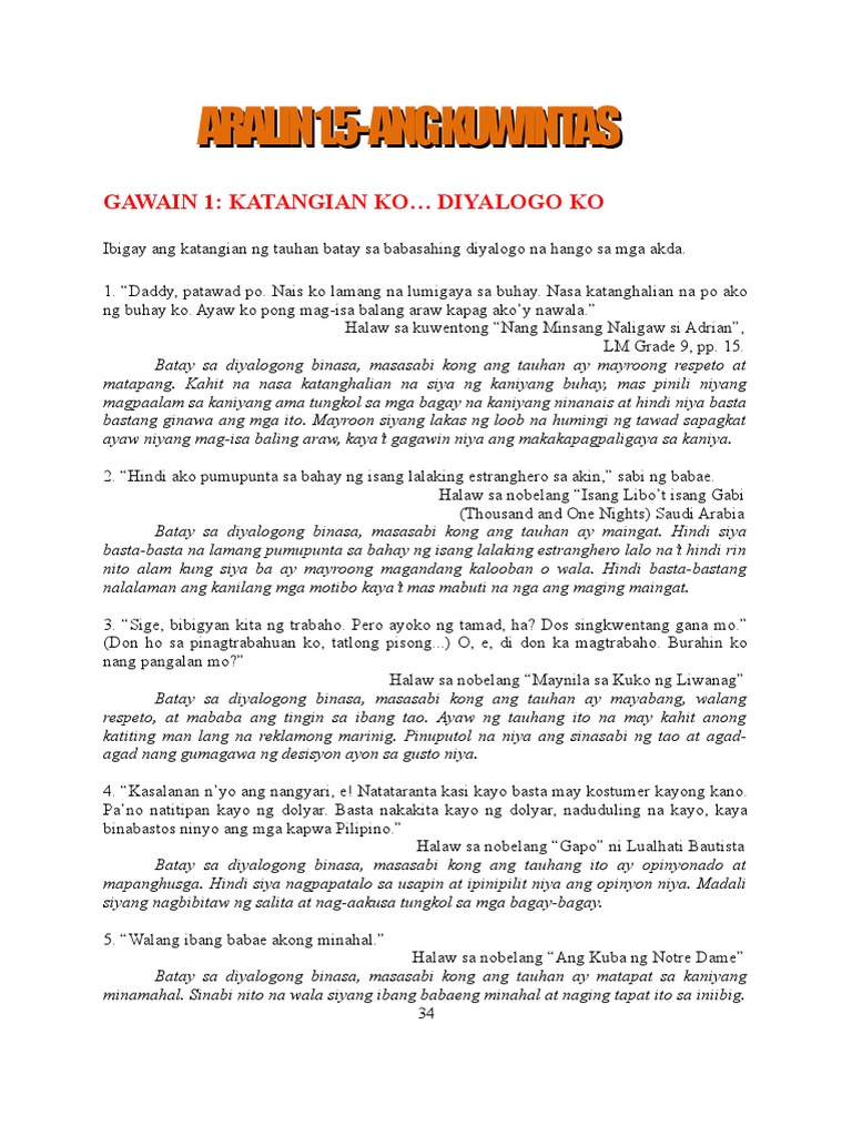 Ilarawan ang magkaibang wakas ng mga tauhan na masasalamin sa nobela. Filipino 28102019 1529 nelgelinagudo. 3 on a question ilarawan Ang magkaibang wakas Ng mga tauhan na masasalamin sa novela gamitin Ang kasunod na datagram sa pag sagot -.